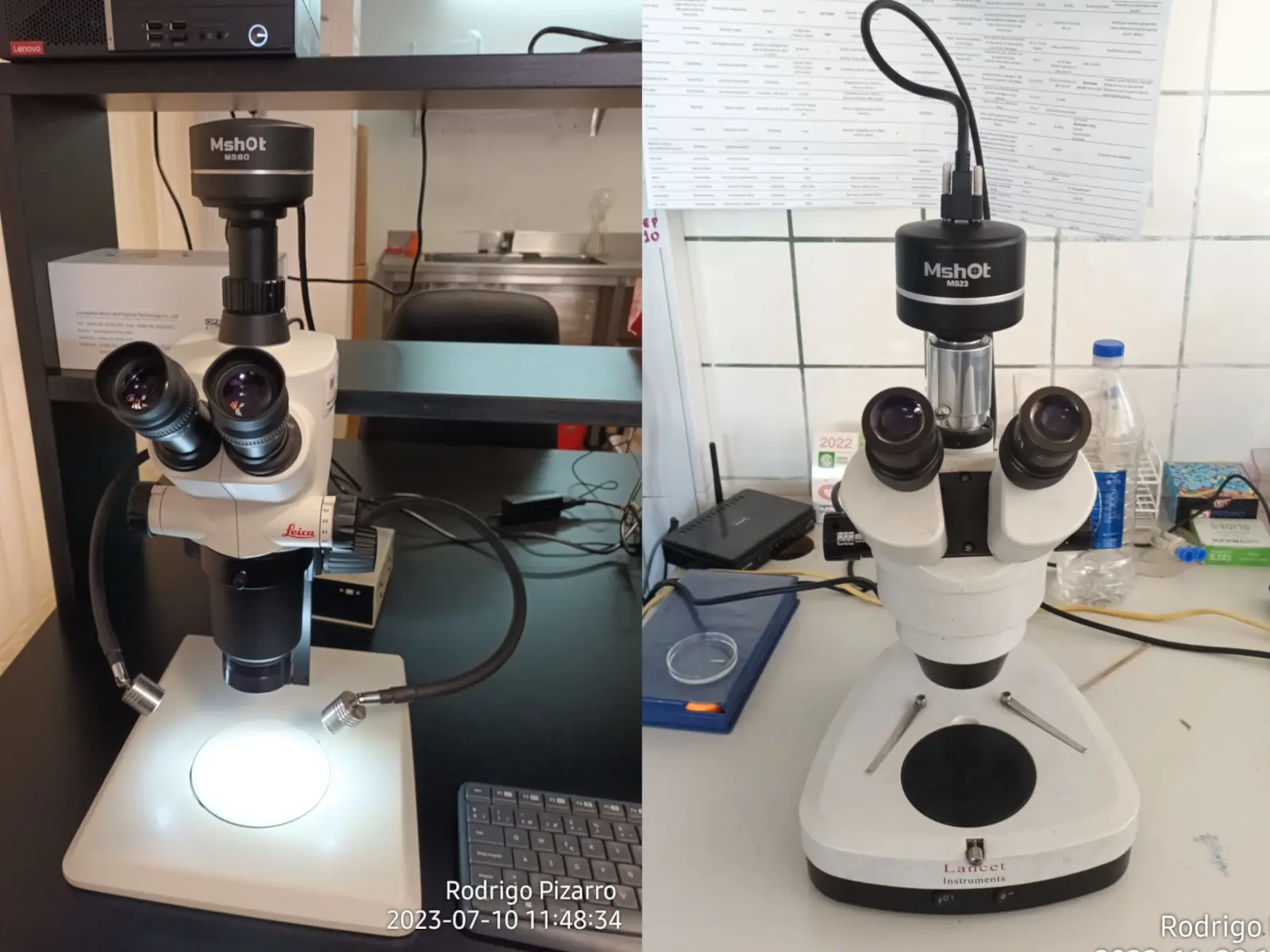 También he trabajado con microscopios estereoscópicos, comunmente denominada lupas, que se utilizan para observar objetos más grandes, como insectos, circuitos electrónicos, telas, impresiones, proyectiles, etc. Las marcas con las que he trabajado incluyen Leica (y las marcas que fue comprando Leica al paso de decadas de incursión mecánica y óptica), Zeiss, Olympus y los chinos genericos obviamente.