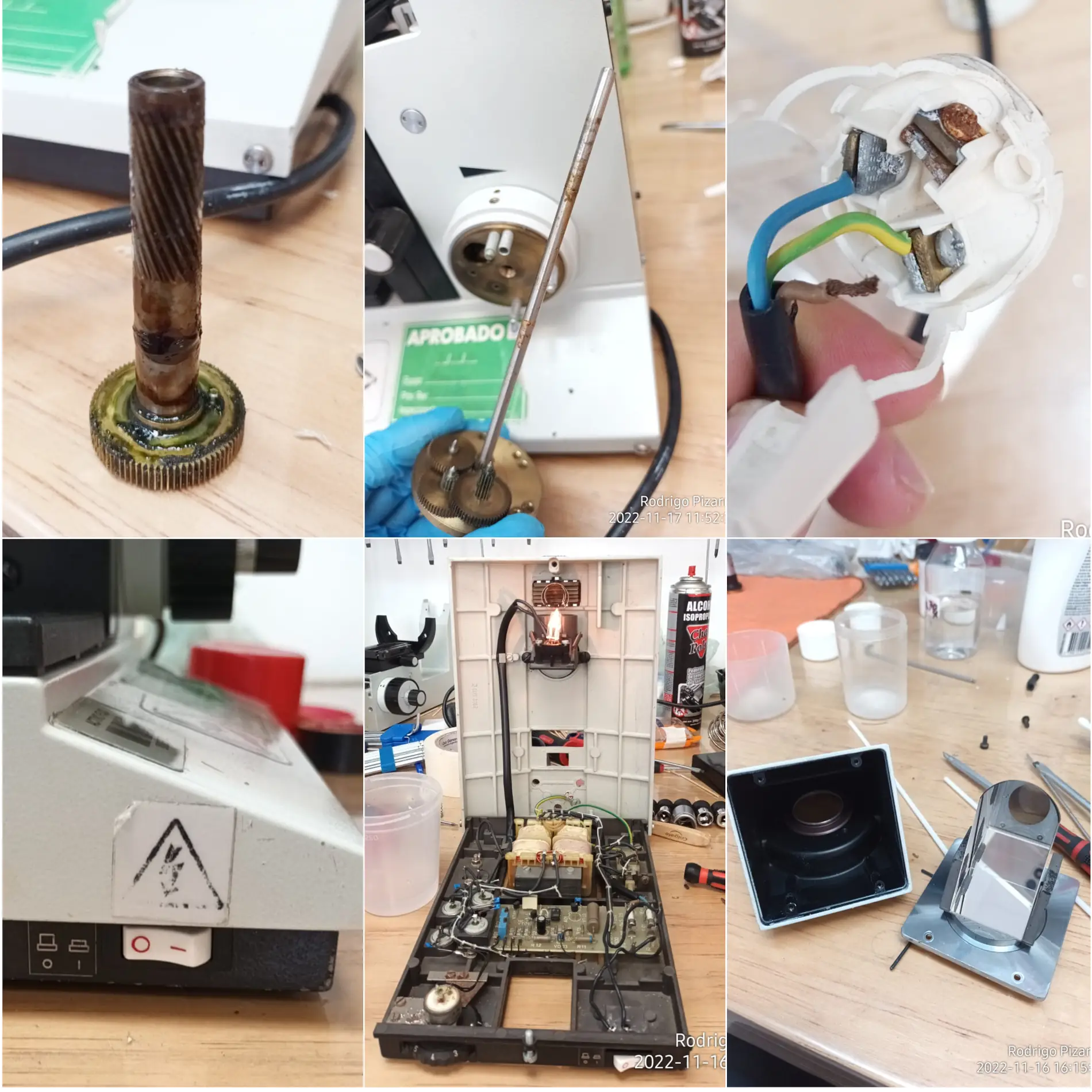 Aparte de las marcas, las diferentes técnicas de microscopía, como la luz transmitida, la luz reflejada, la fluorescencia, la microscopía de contraste de fases, etc, requieren diferentes tipos de mantenimiento, y he trabajado con todas ellas, brindando un servicio integral para asegurar el óptimo funcionamiento de los microscopios en sus diversas aplicaciones. Conozco cuando hay un hongos, polvo, aceite o suciedad en las lentes, y como limpiar cada tipo de lente, y también como revisar componentes mecánicos como el sistema de enfoque macro y micrométrico, la platina, el Eje XY, el sistema de iluminación, etc., para asegurar que el microscopio funcione de manera óptima.